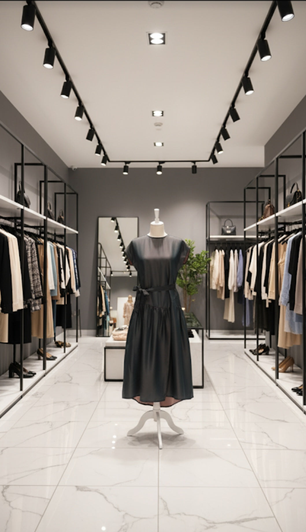| Silhouette | Relaxed yet refined, featuring a sophisticated Drop-Waist and a gathered, tiered skirt. |