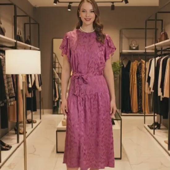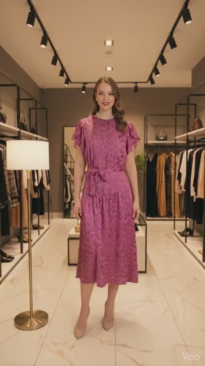 Plum Blossom Feather Midi drop waist with sash