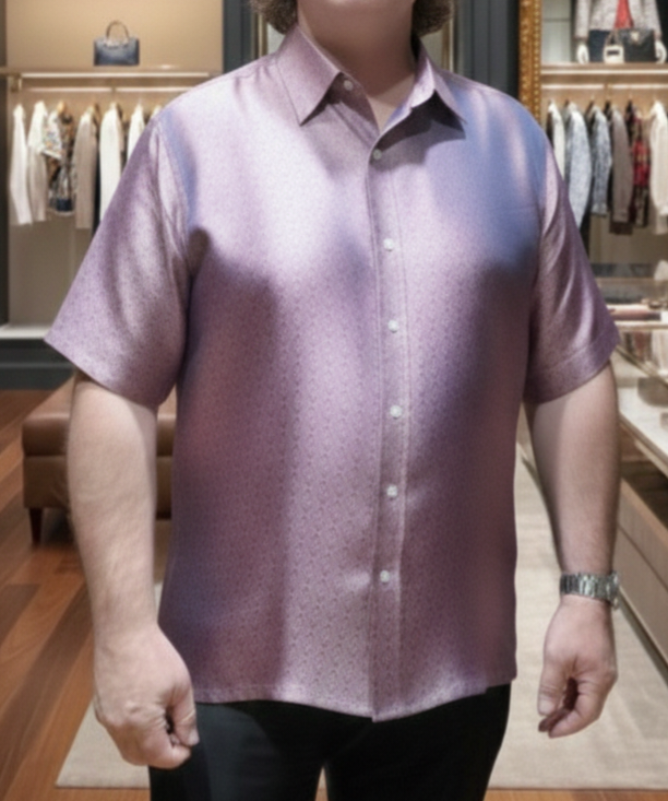 Experience the pinnacle of sartorial elegance with this short-sleeved masterpiece. This shirt is meticulously crafted from a premium blend of 80% Mulberry silk and 20% Viscose, offering a superior hand-feel that combines the peerless luxury of silk with the enhanced durability and drape of viscose.